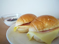 バターロールサンド(ハム&チーズ) 2個 ブルーベリージャム入りヨーグルト カフェオレ |