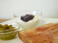 ライ麦食パンのトースト(イチジクジャム) うぐいす豆 ミックスベリージャム入りヨーグルト カフェオレ |